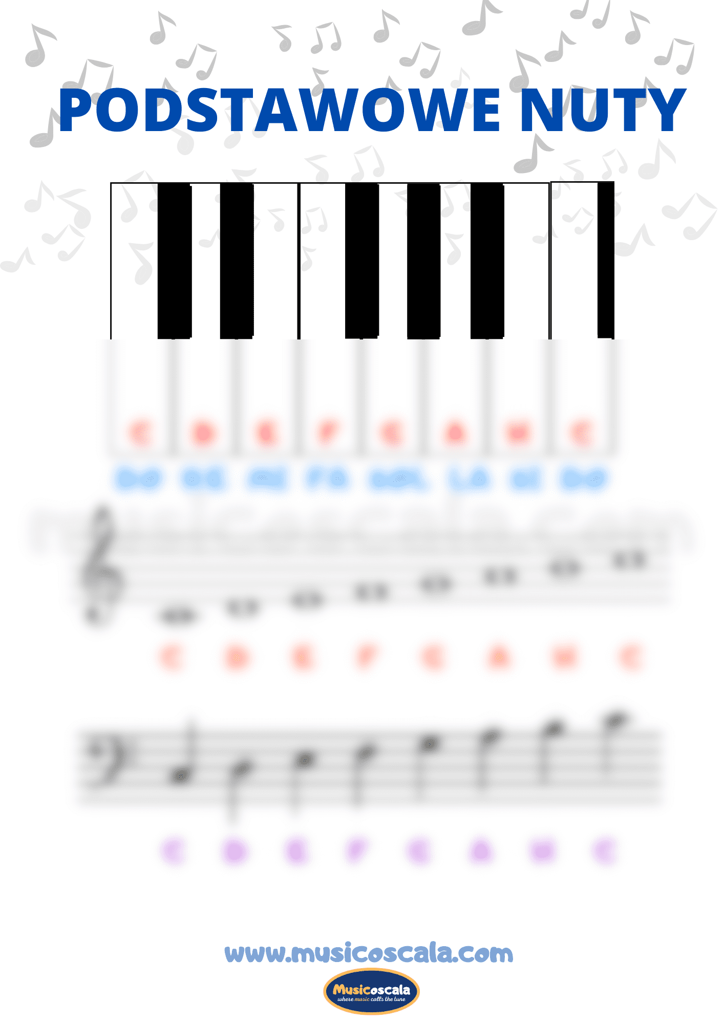 Typ: Pomoce dydaktyczne: Plakat z teorią muzyki – podstawowe nuty (dźwięki).